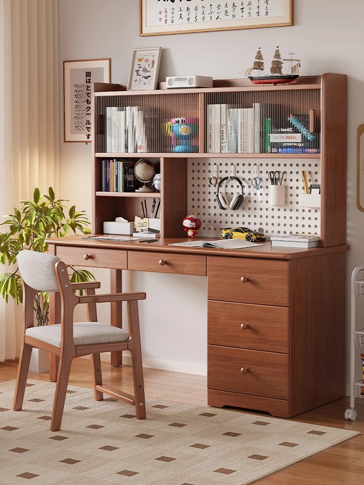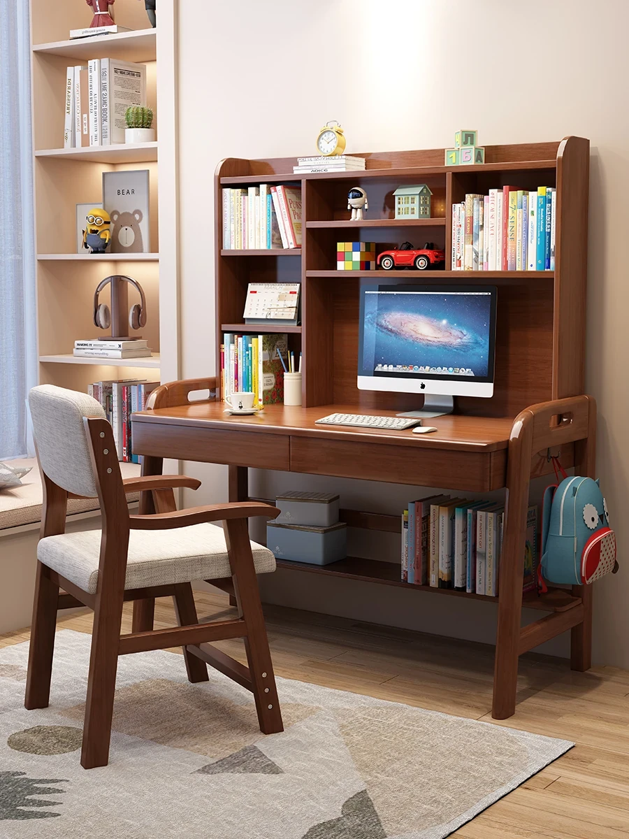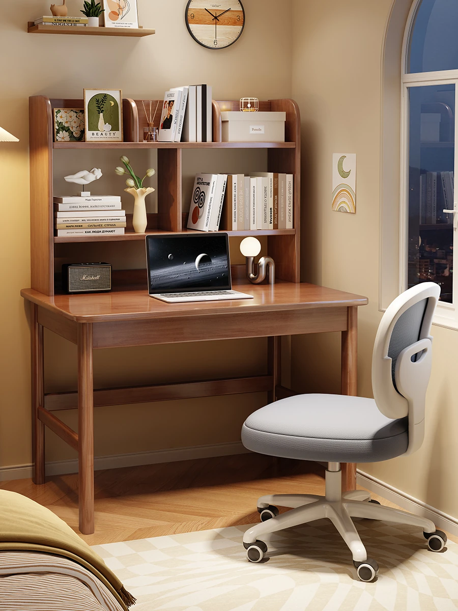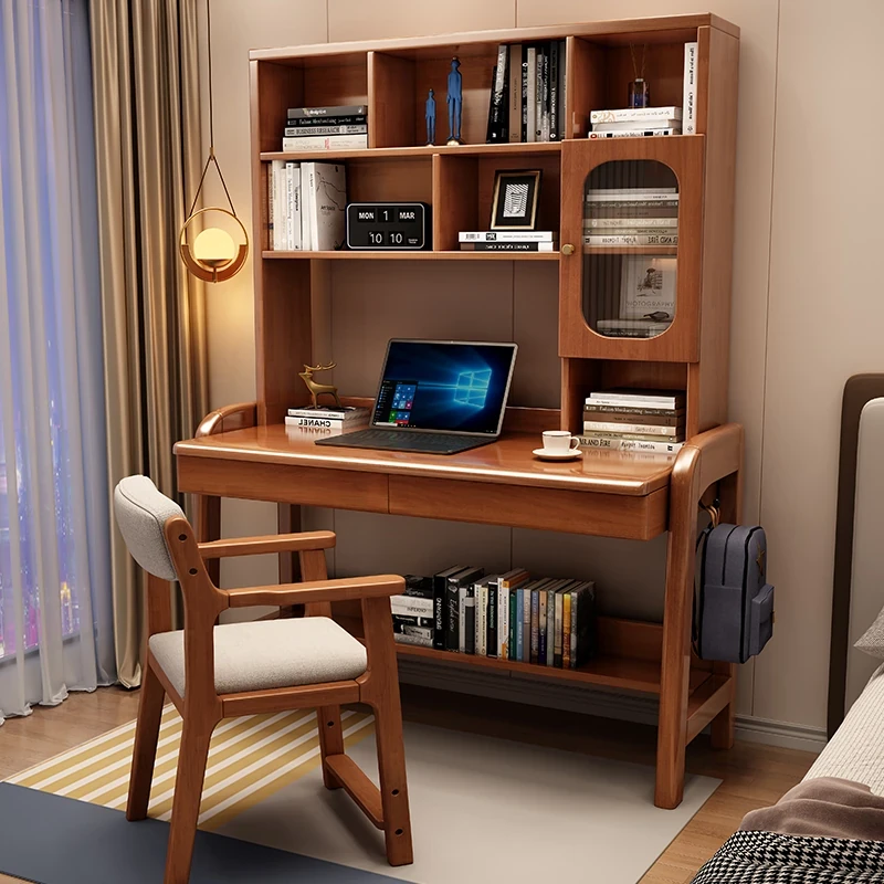 無垢材の書斎デスク&本棚一体型|高校生に最適!子供の勉強にピッタリな寝室用デスク|ベッドサイドやオフィスに最適|スタイリッシュで機能的な家庭用コンピューターデスク