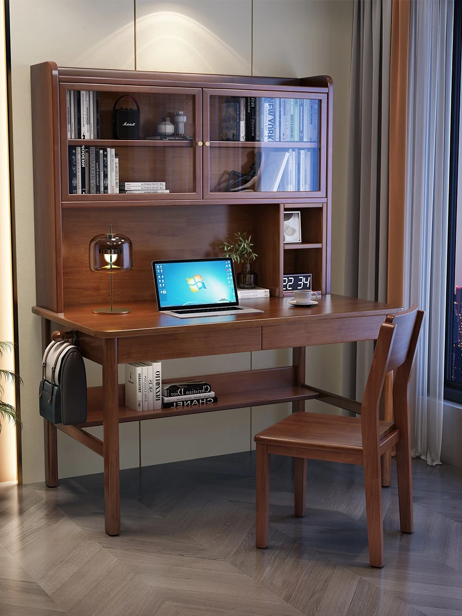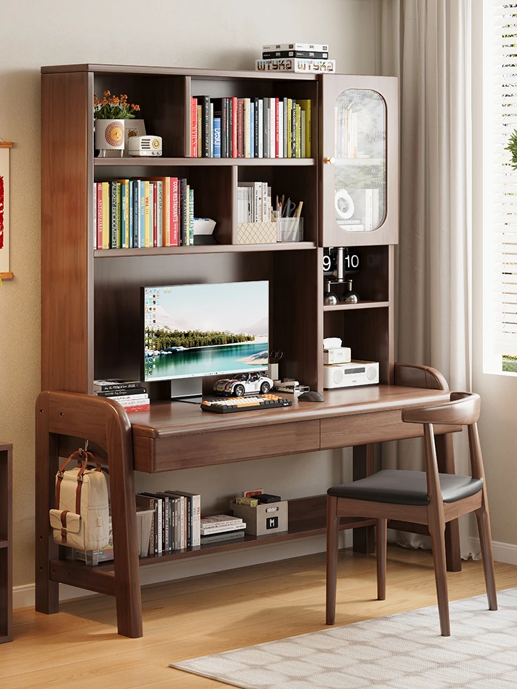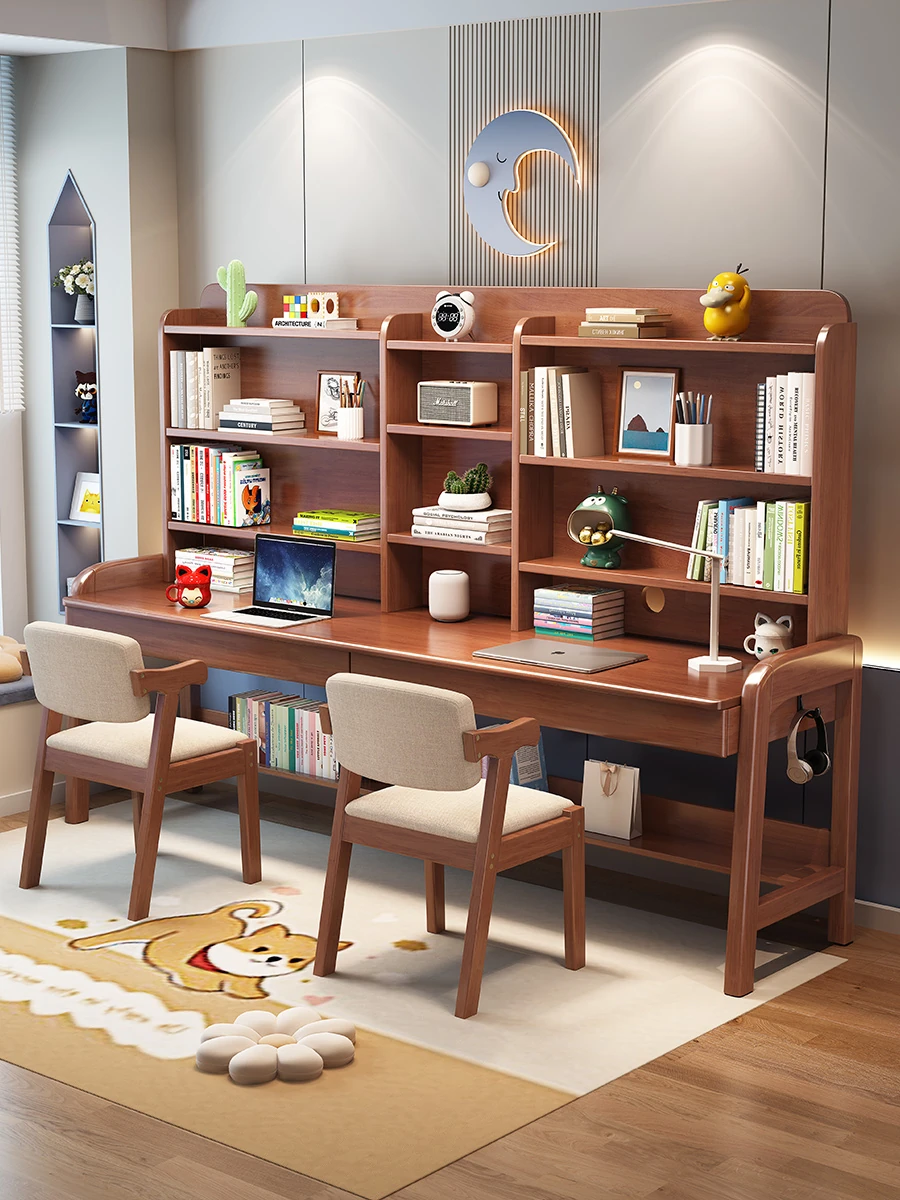 無垢材の書斎デスク&本棚一体型|高校生に最適!子供の勉強にピッタリな寝室用デスク|ベッドサイドやオフィスに最適|スタイリッシュで機能的な家庭用コンピューターデスク