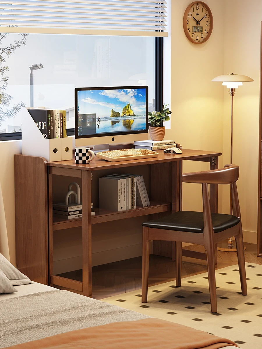 北欧スタイルの折りたたみ式木製デスク - コンパクトな伸縮型パソコンデスクと書棚が一体!学生に最適な書き物デスク、小さなスペースでも使いやすく、快適な学習環境を提供します。
