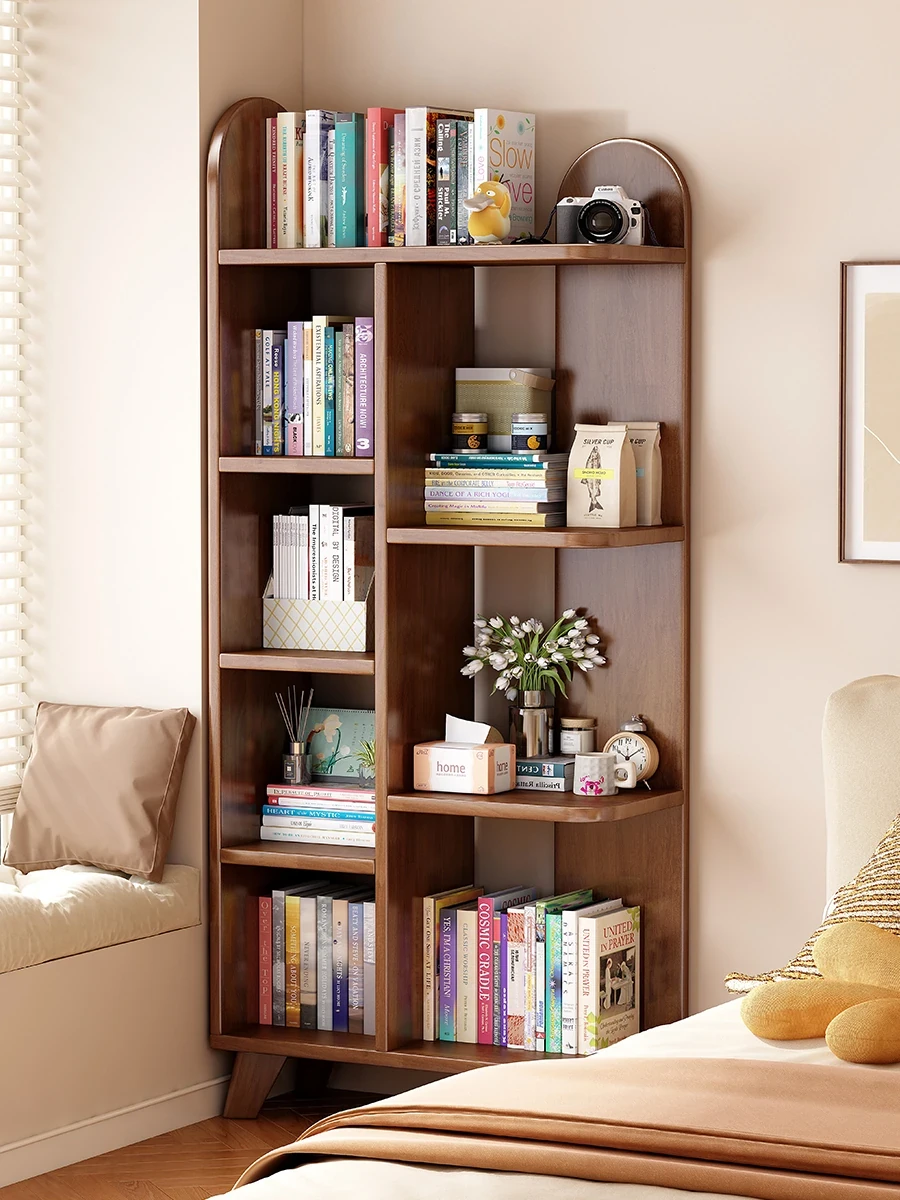 "Solid Wood Bookshelf – Space-Saving Floor Storage Rack for Living Room, Bedroom, and Corner Areas – Stylish and Functional Bookcase Perfect for Organizing Your Space"