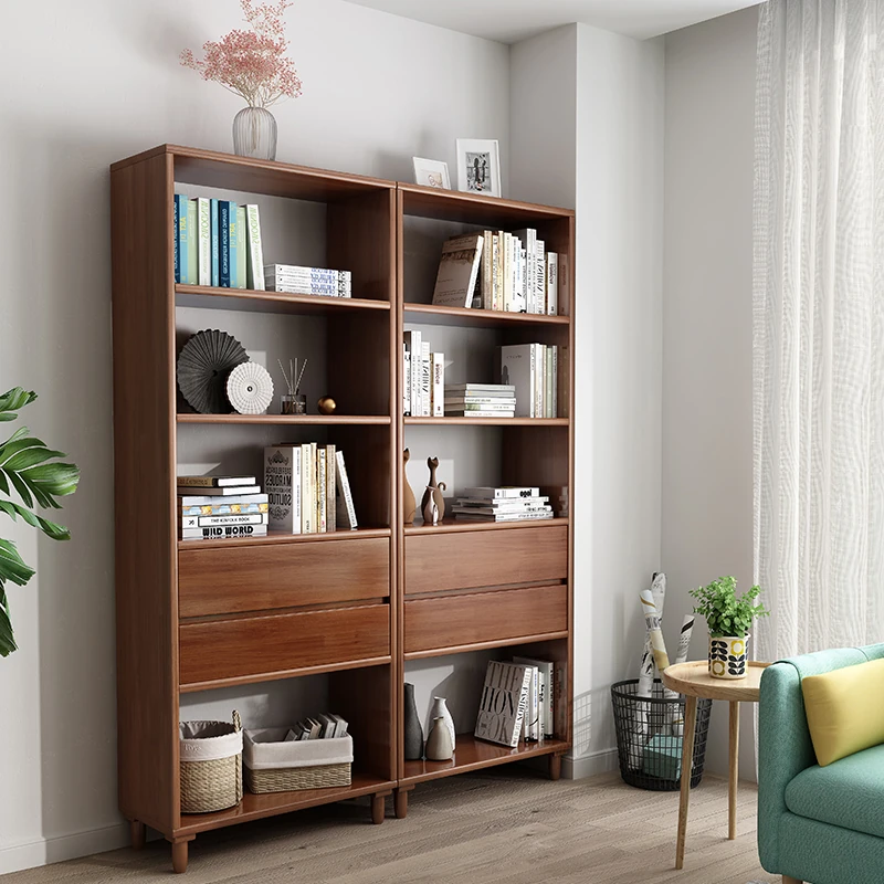Scandinavian-Japanese Solid Wood Bookshelf – Versatile Freestanding Storage Unit for Home Use, Minimalist Design for Living Room or Full Wall Bookcase in Natural Finish