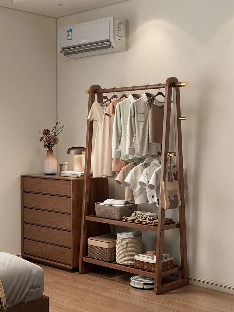 Scandinavian Solid Wood Coat Rack - Stylish Floor Stand for Bedroom - Multi-functional Clothes Storage and Drying Rack for Home Use