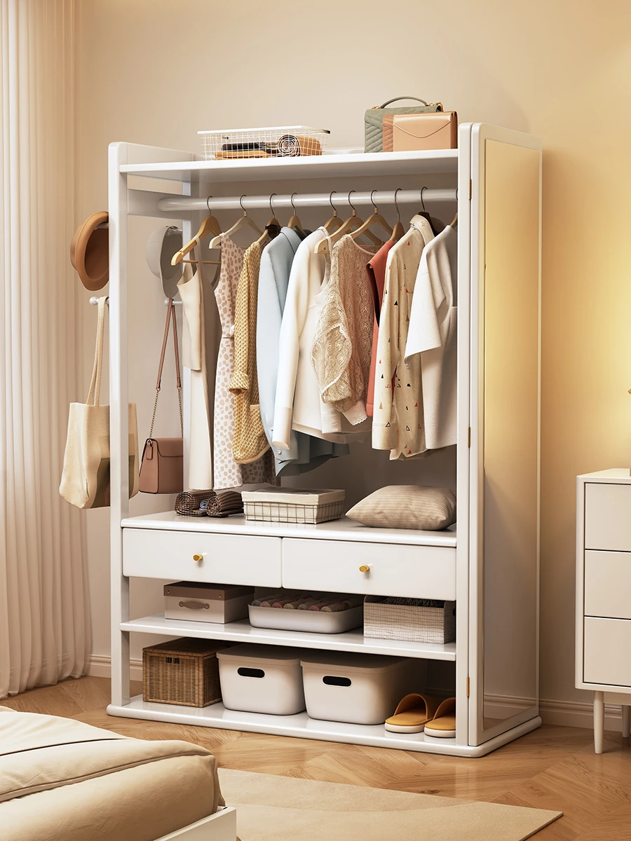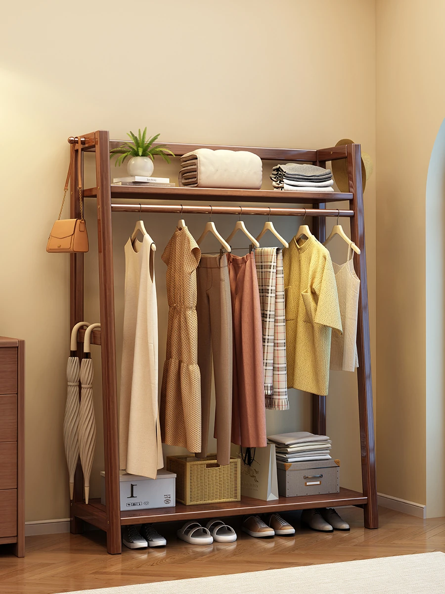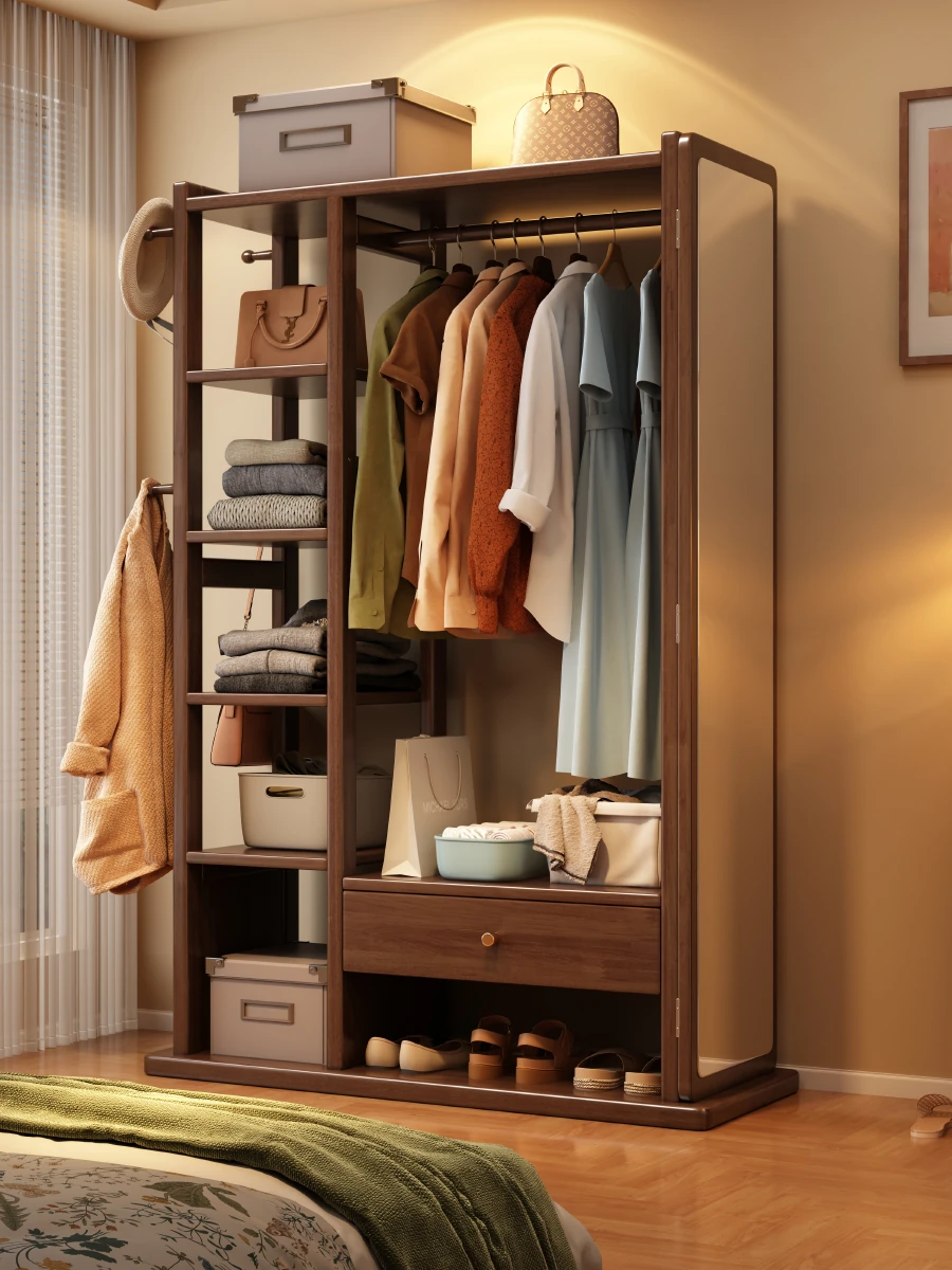 Multifunctional Solid Wood Clothing Rack with Drawers - Space-Saving, Portable Coat Stand for Living Room & Bedroom Storage Solutions