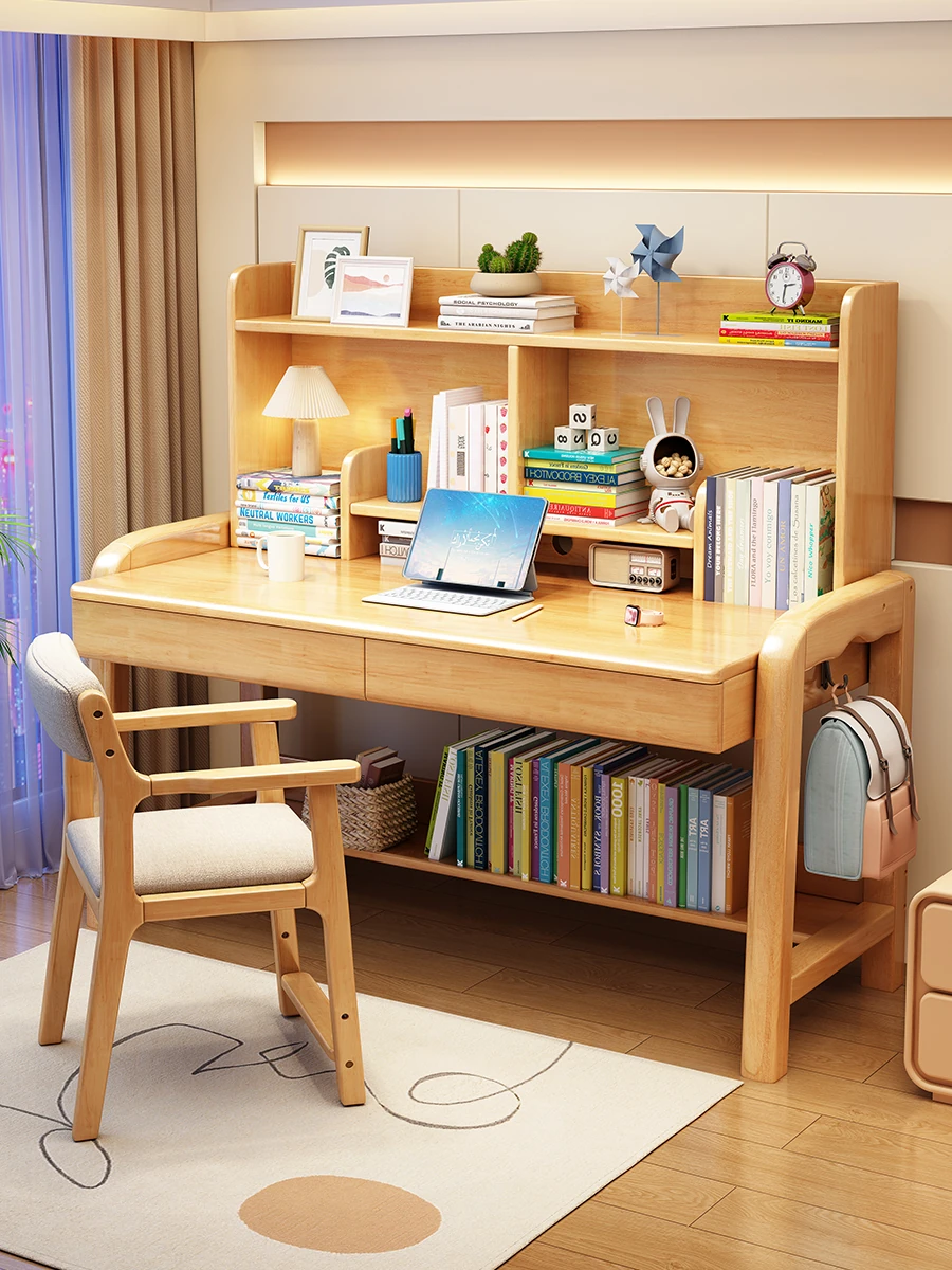 Solid Wood Children's Study Desk with Integrated Bookshelf – Perfect for Home and Office Use, Ideal for Middle and High School Students' Writing and Learning Needs.