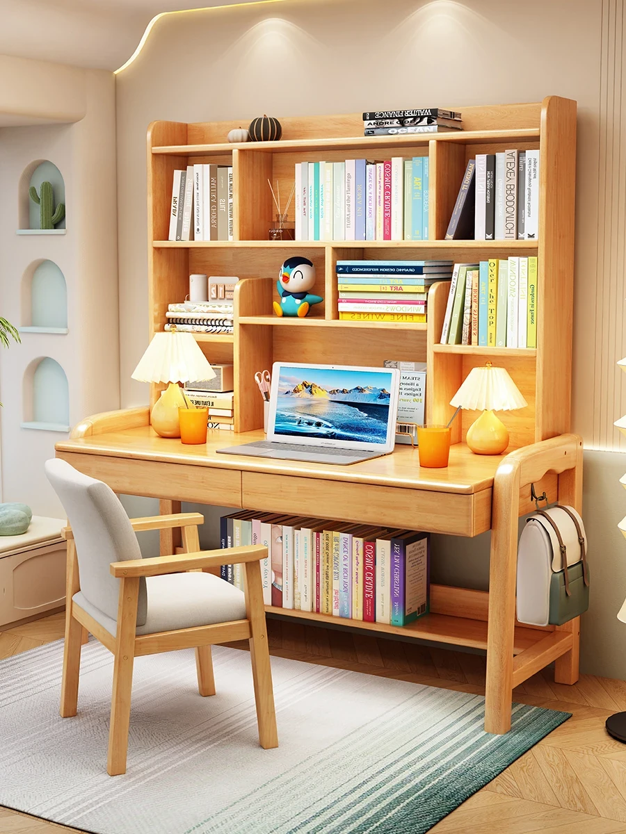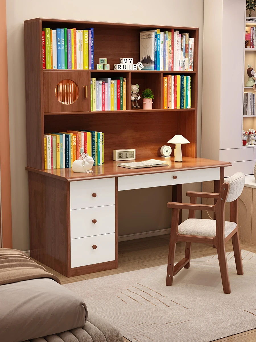 Introducing our Modern Solid Wood Desk and Bookshelf Combo – a sleek and functional computer desk perfect for home, bedrooms, and students. Ideal for kids' study, this stylish writing desk integrates storage for a clutter-free learning environment.