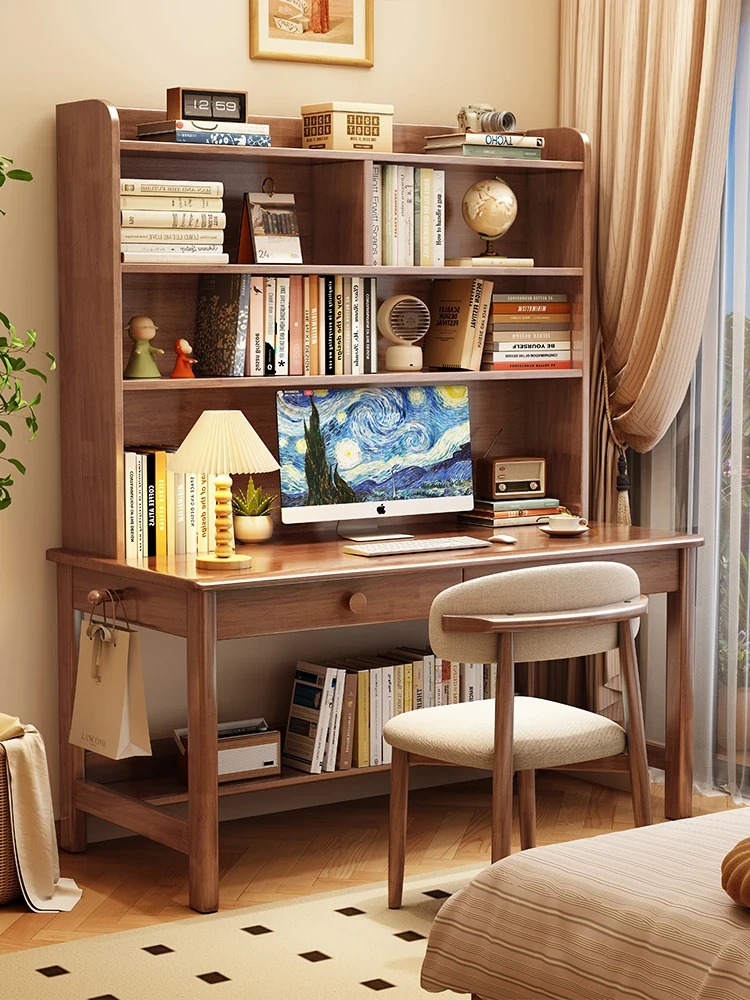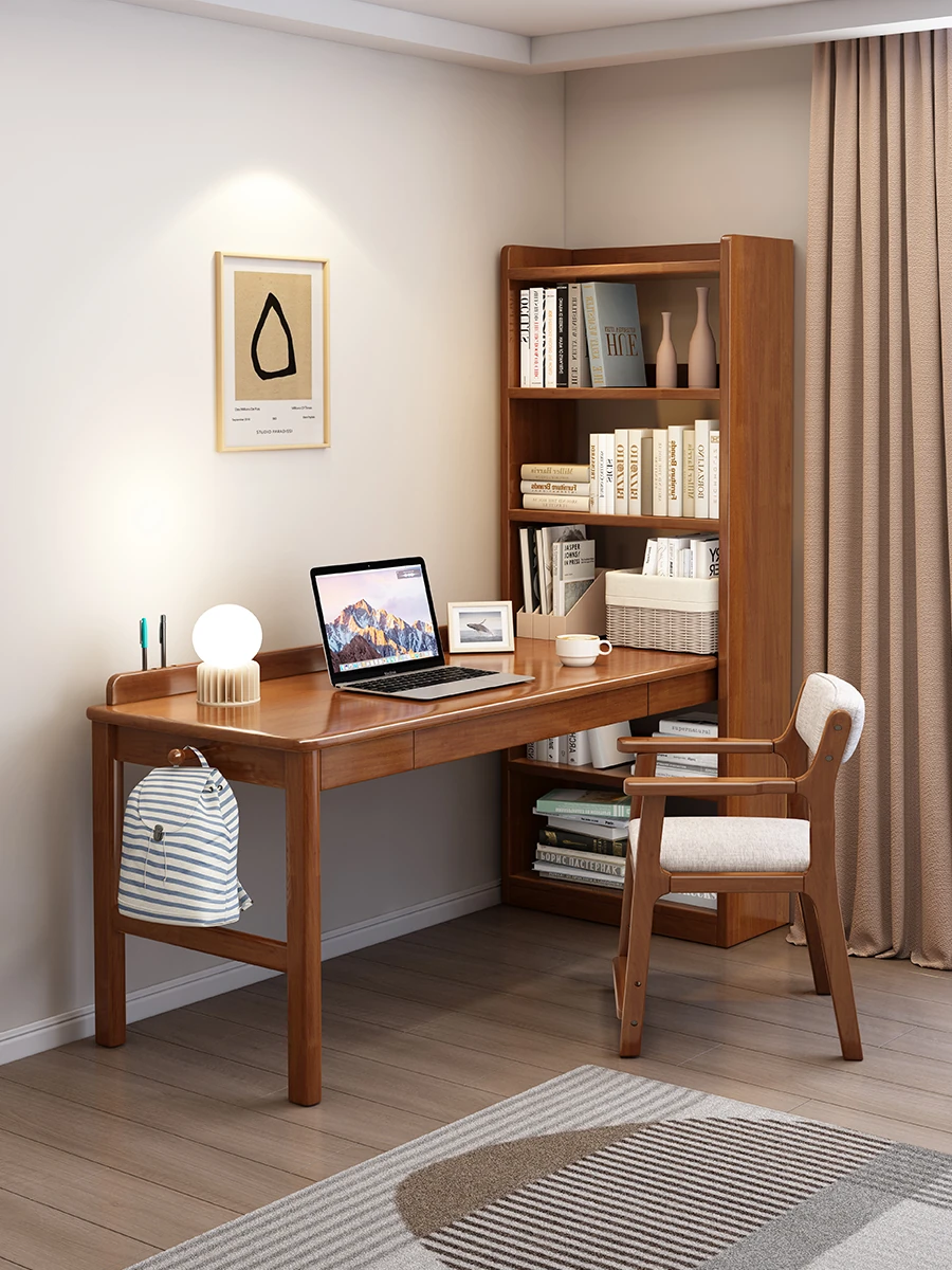 "Multifunctional Home Bookshelf and Study Desk: Elegant Solid Wood Writing Table for Your Bedroom or Home Office – Perfect for Learning and Productivity"