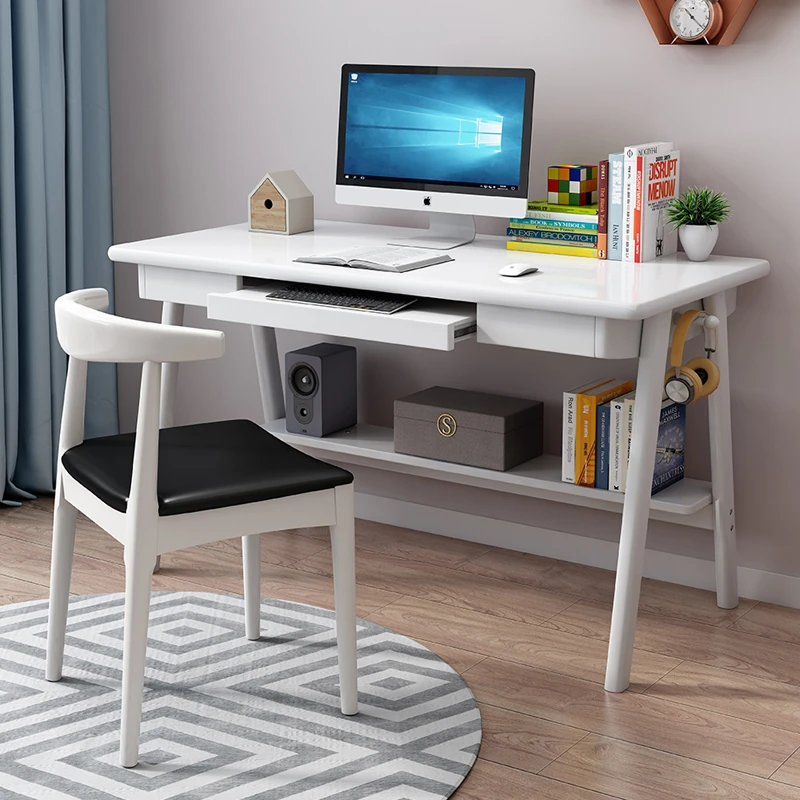 Nordic Minimalist Solid Wood Desk for Students – Stylish Computer Table with Keyboard Tray, Ideal for Home Office, Bedroom Writing, and Study. Perfect Blend of Functionality and Aesthetics!