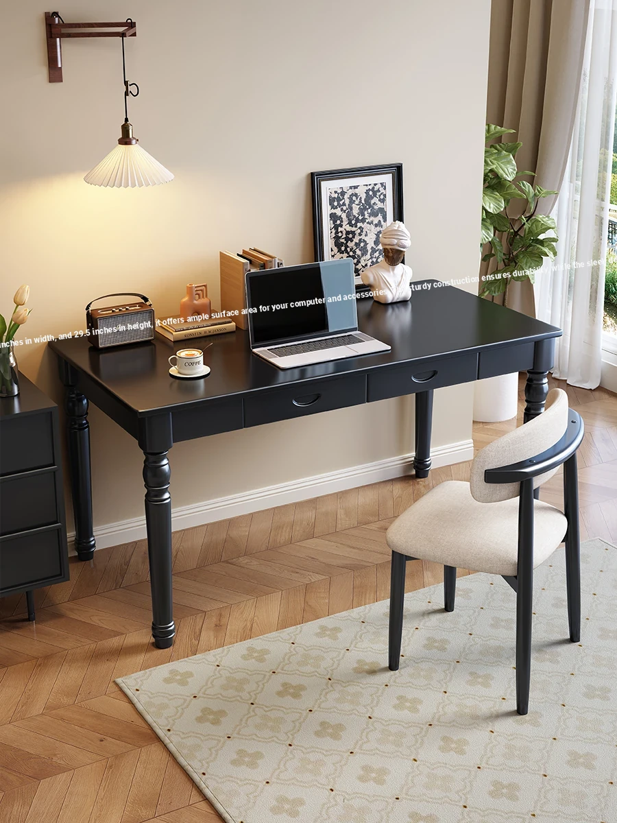 Elegant Vintage Solid Wood Desk - Modern Black Minimalist Home Office Table for Small Spaces, Living Room, and Study - Perfect for Stylish Work and Study Environments