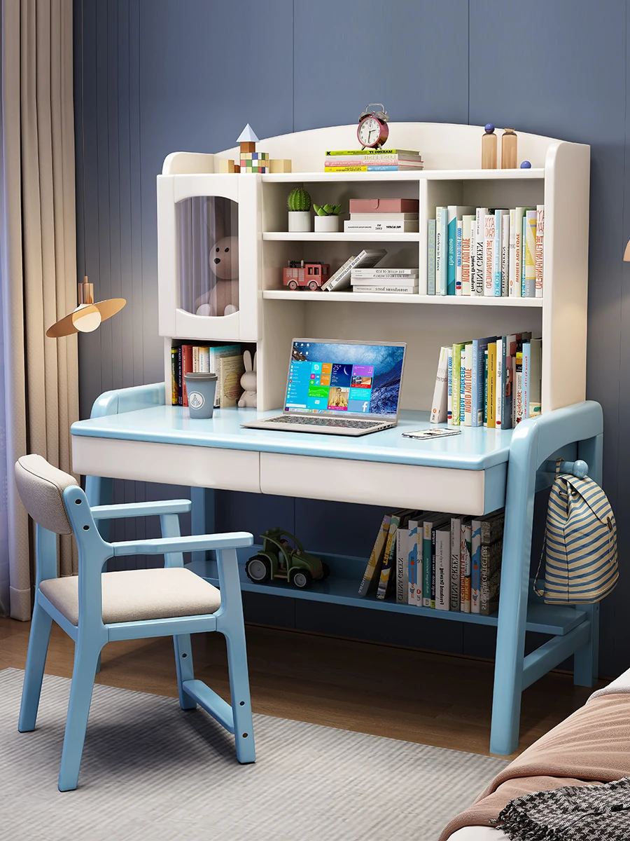 Minimalist Student Computer Desk with Bookshelf - Versatile Home Office Table for Bedrooms, Featuring Solid Wood Design - Perfect Study Desk for Kids and Teens